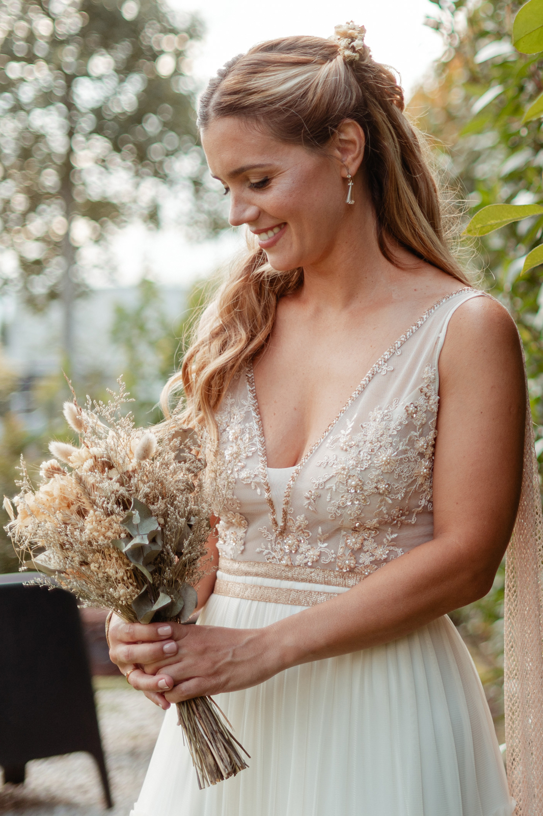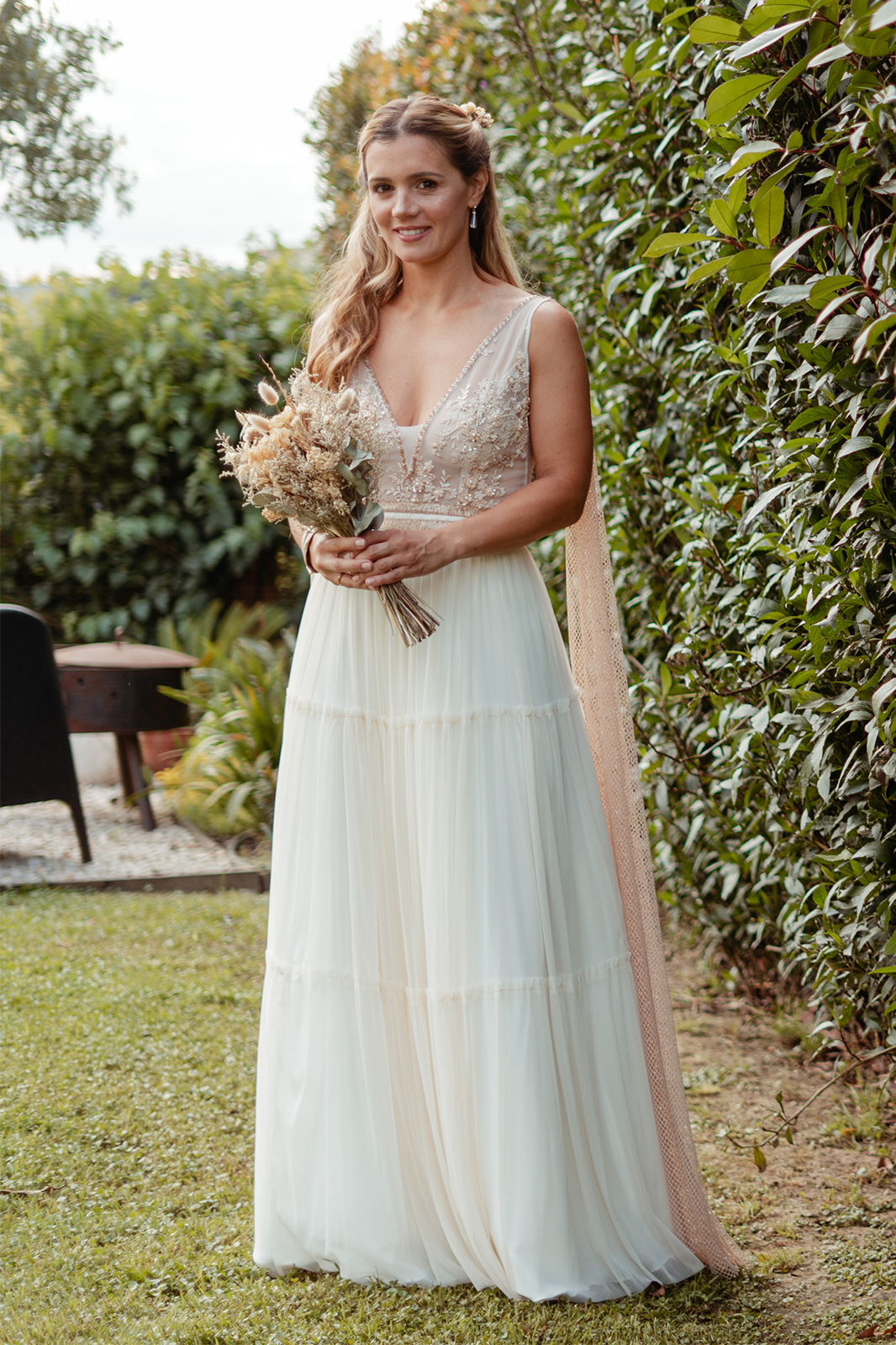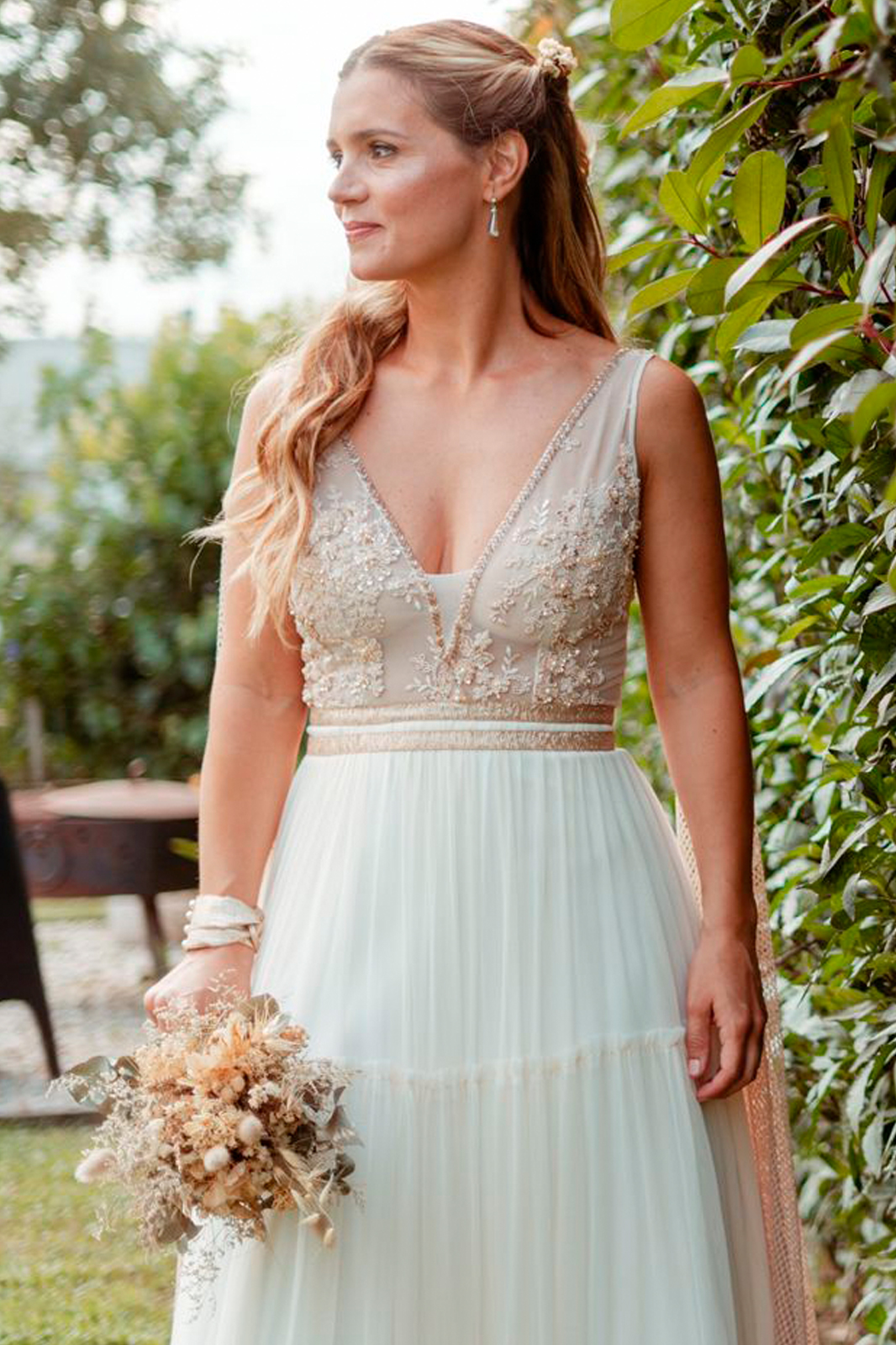 Les presentamos una exclusiva selección de nuestras novias, cada una con un diseño único que la representa. Detrás de cada vestido hay un proceso de selección de líneas y texturas, y un equipo de mujeres apasionadas que trabaja en cada detalle para que el look de cada novia sea perfecto.